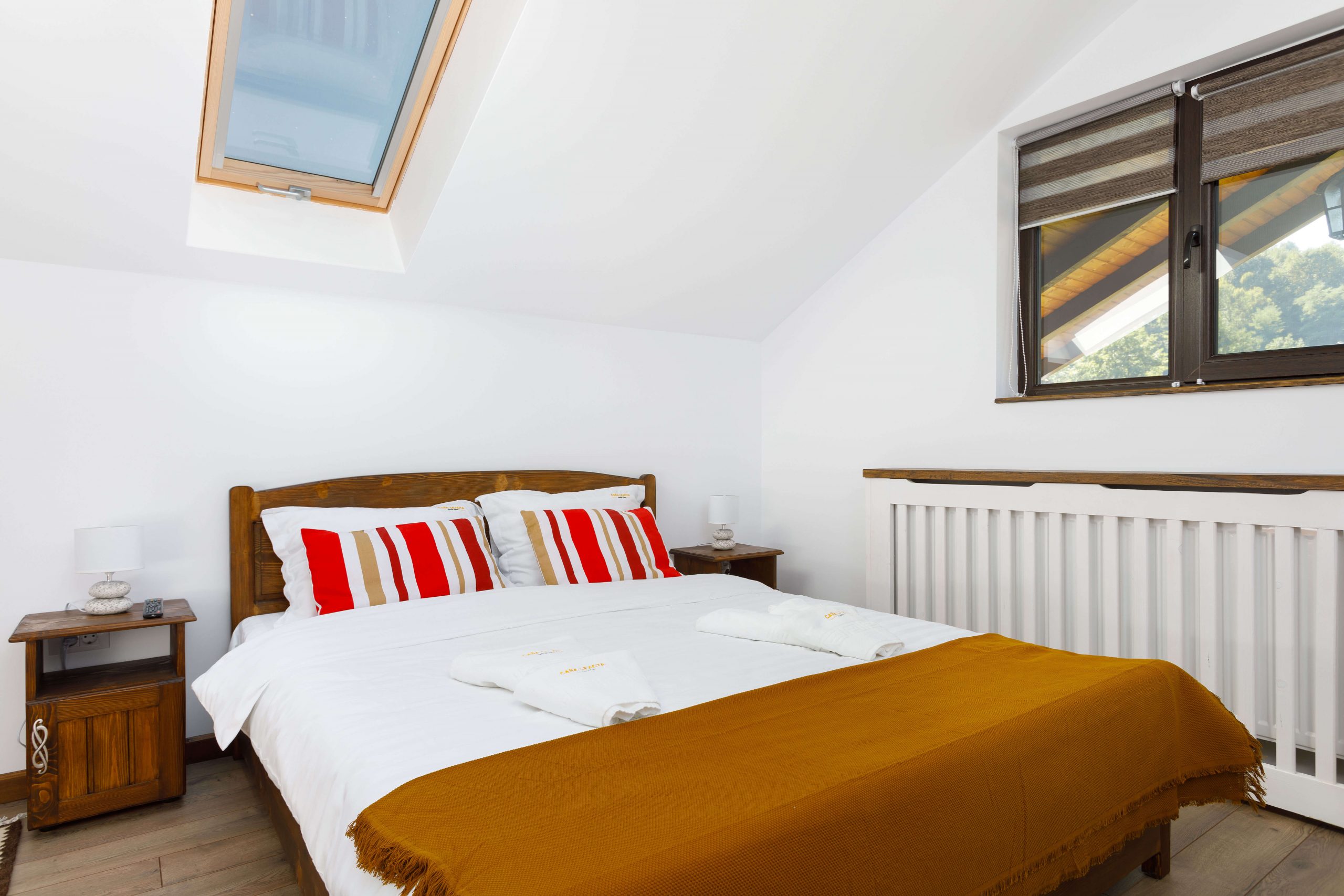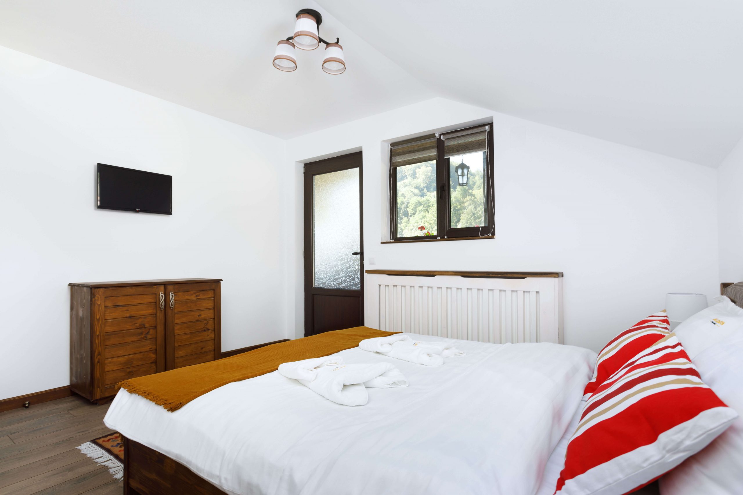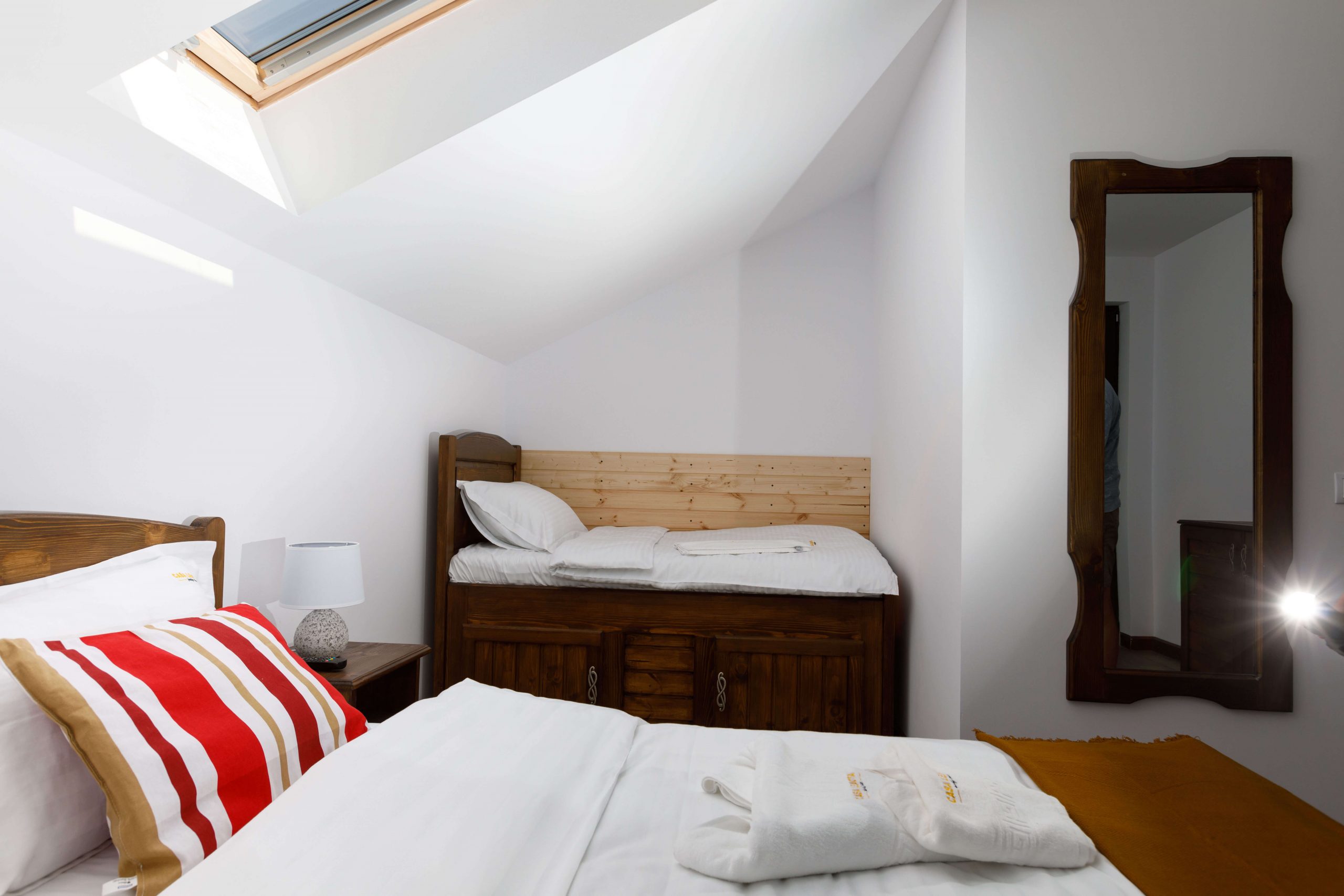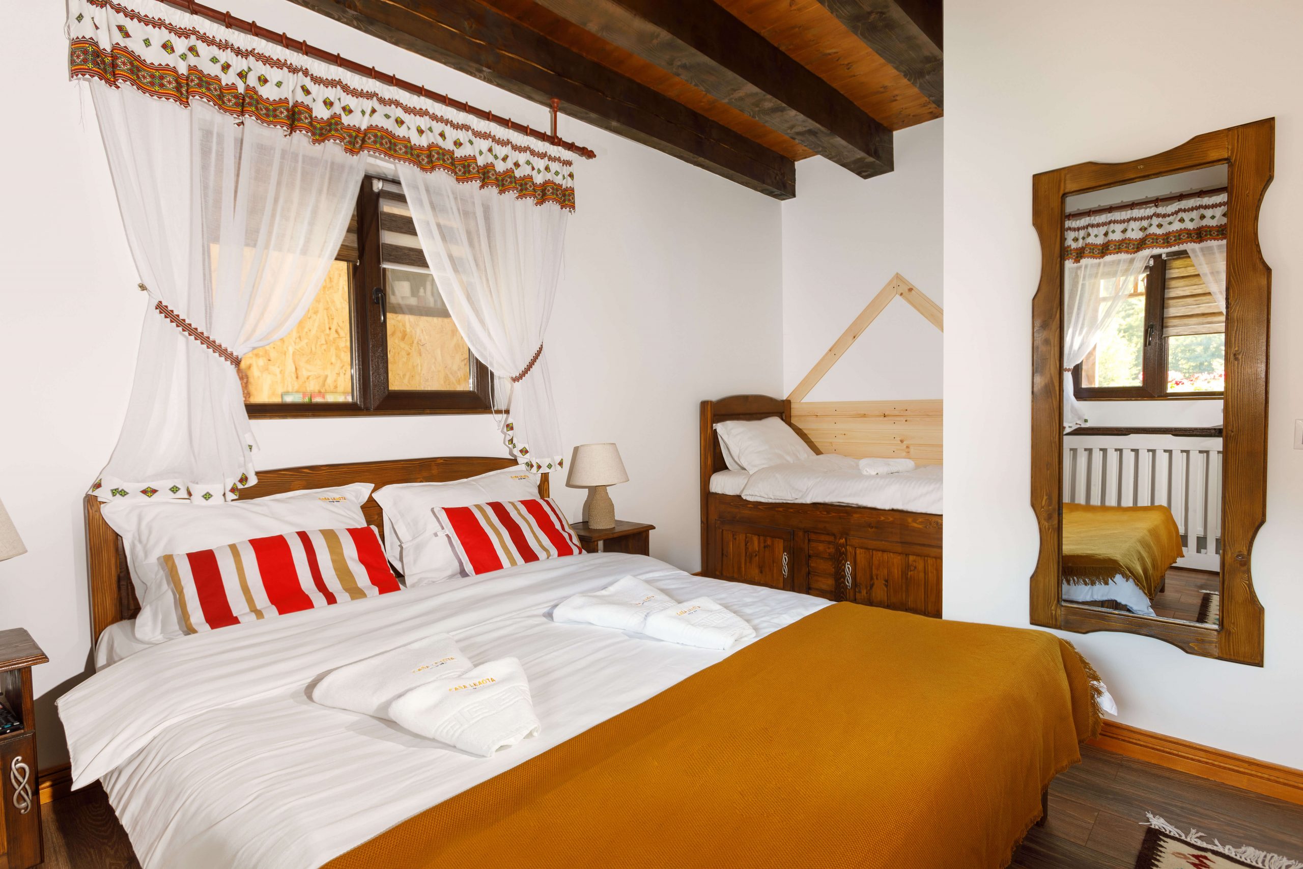 Casa Leaota dispune de 4 camere duble (o cameră are două paturi etajate – ideale pentru copii + spațiu pentru activități recreative dotat cu o consolă Playstation).